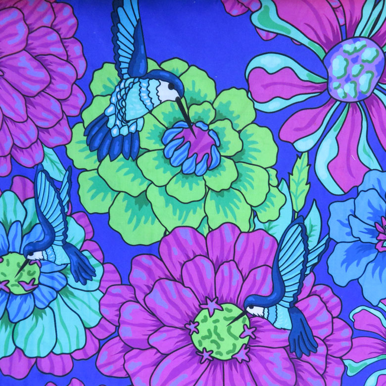 Item Description: Vibrant, jewel-toned fabric is the designed by Sew Yeah Quilting for Riley Blake.A large-scale, digitally-printed floral motif featuring stylized zinnias or carnations and hummingbirds large print.