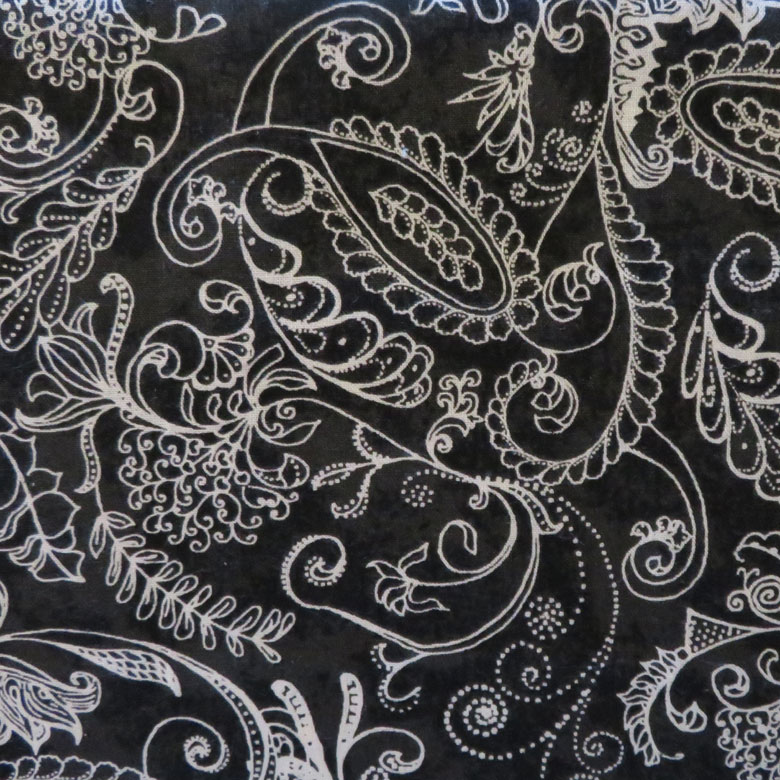 Item Description:  A fun play of paisley patterns with a tonal black background. A great choice for your quilt back.