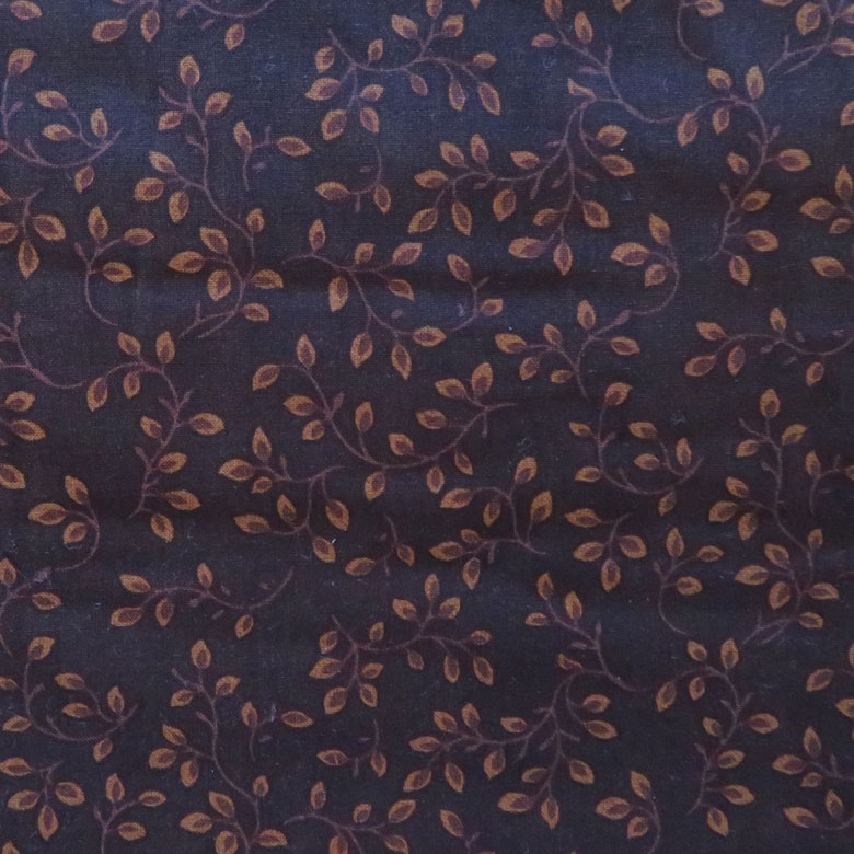 Description:  Brown background rust colour small leaves wide width backing fabric suitable for backing quilts. Perfect for your next quilting project.