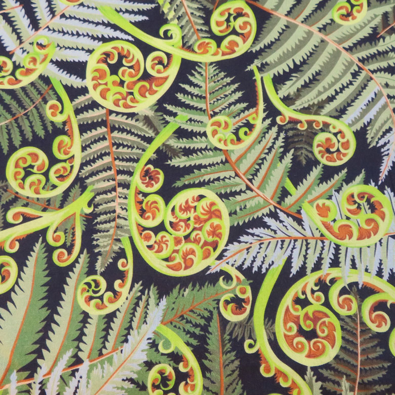 Item Description: Featuring a stunning kiwi New Zealand frond fern beautiful play of curling koru ferns and leaves