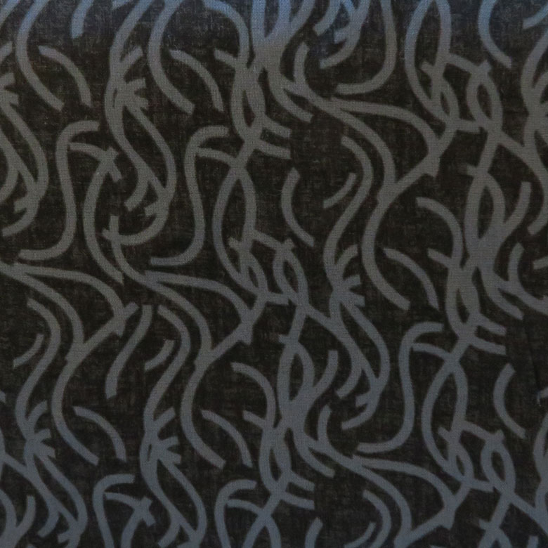 This line from Studio E is made especially for quilt backs to eliminate any seams – and save money too! 108″/274cm wide and made from 100% cotton, this noodle design is white on black background.