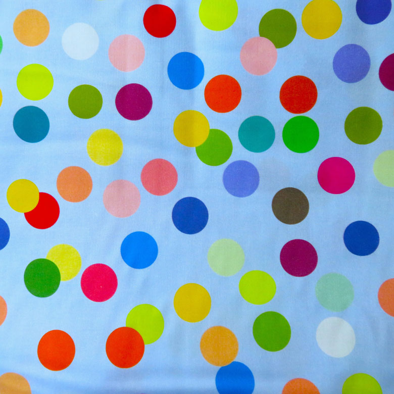 Item Description: Party a Fun backing wide width fabric. Colourful play of spots on a blue background.