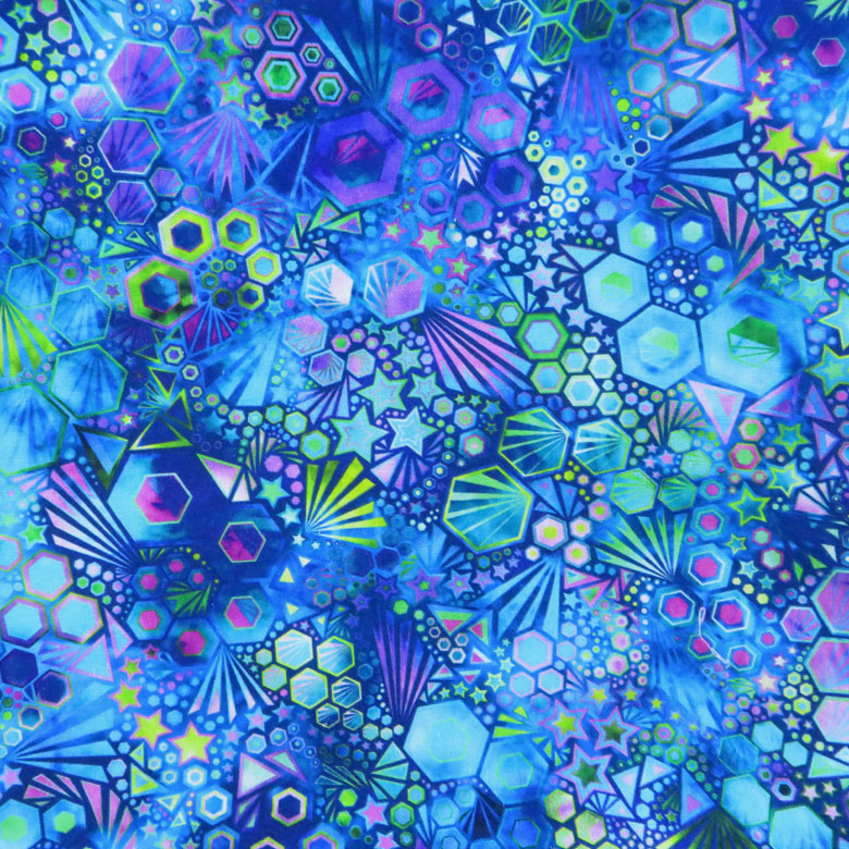 Item Description: Robert Kaufman has designed this wonderfully colorful collection called Phantasma. This is the 108″ wide quilt backing in bright blues with a little lime green and pink.