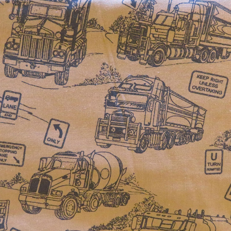 Item Description: For all the semi trailer, truck lovers a perfect backing for your quilt. Can be used front or back of quilt 100% cotton fabric